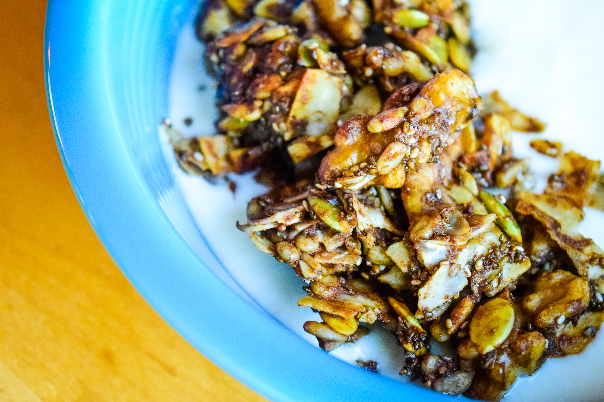 I love really good granola, but store-bought paleo granola, while convenient, is super expensive! $12 for 4 ounces of granola?! No, yo. NOT TODAY. The bulk of this paleo banana walnut granola comes from nutrient-dense seeds, which are typically less expensive than granola recipes calling for eight kinds of nuts.