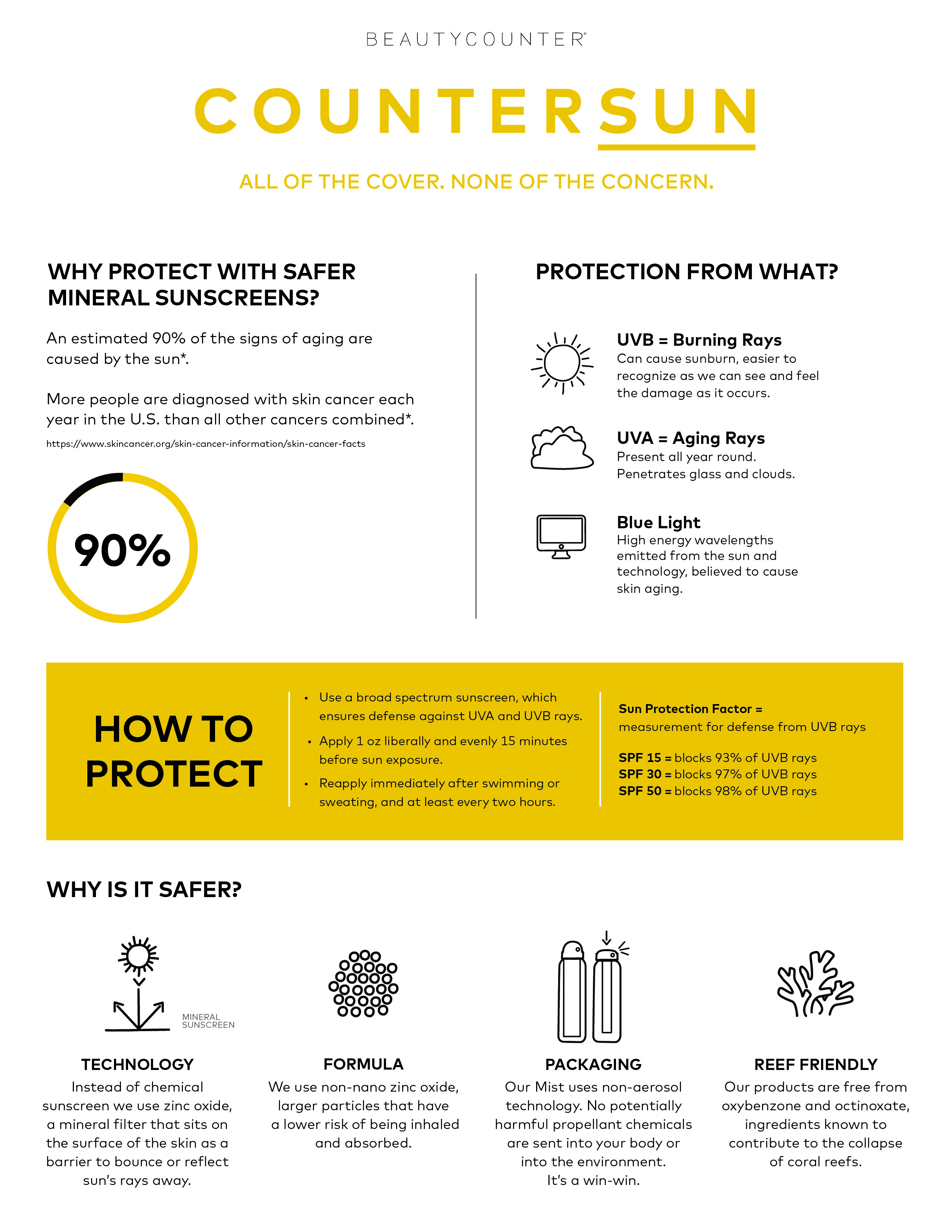 Physical, not chemical sunscreens. There’s a distinct difference between chemical-based sunscreens made with oxybenzone, octinoxate or avobenzone (what we typically find in stores) and physical-based sunscreens which are made with a zinc oxide or titanium dioxide based SPF. Chemical sunscreens come with health risks such as skin irritation, increased skin permeability, allergies, and endocrine disruption.