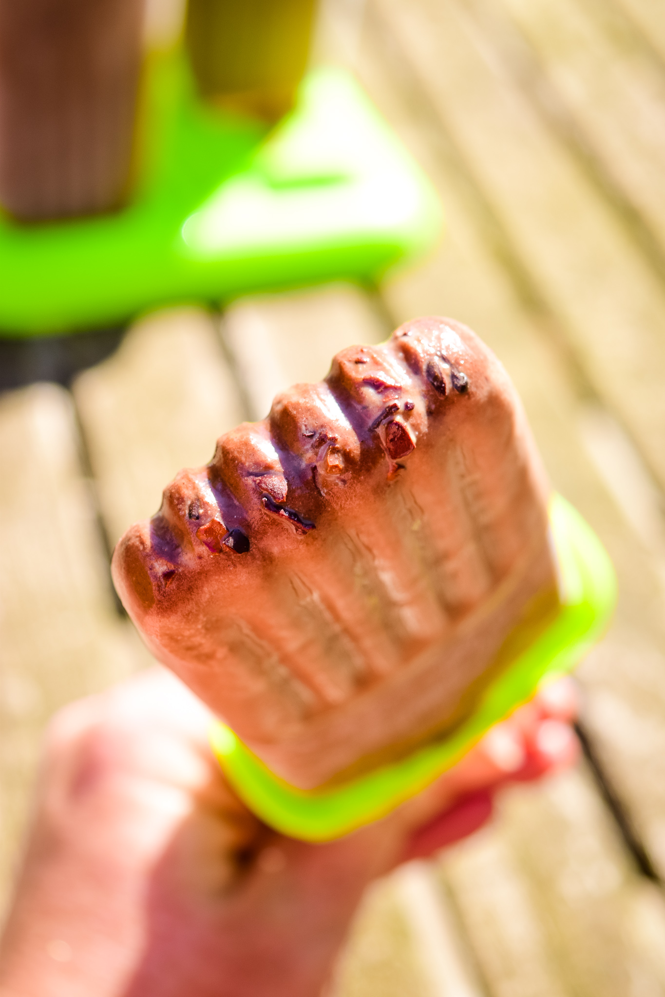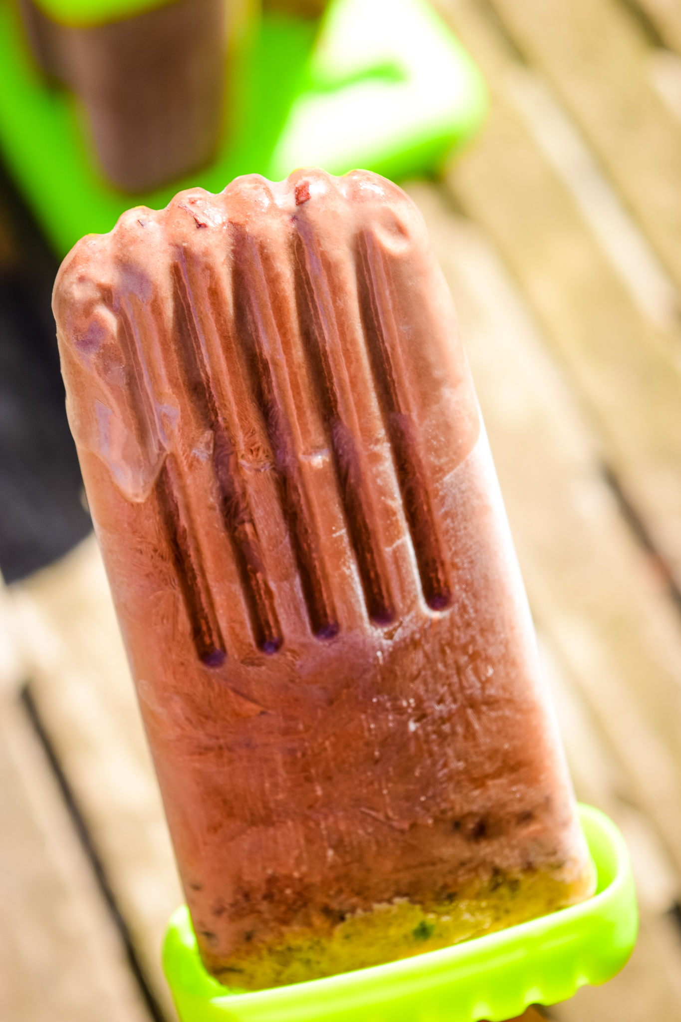 Sometimes our popsicle molds are occupied– we make a lot of popsicles around here– so we have to get creative! Growing up we didn’t have a popsicle mold (at least that I remember!) So we made popsicles in cups or ice cube trays! Pour the Java Chip mixture into a silicone ice cube tray or portion into freezer safe containers and freeze for approximately 90 minutes. Add popsicle sticks to the partially frozen treat (or you can even use spoons) and freeze for at least another 90 minutes, until solid.