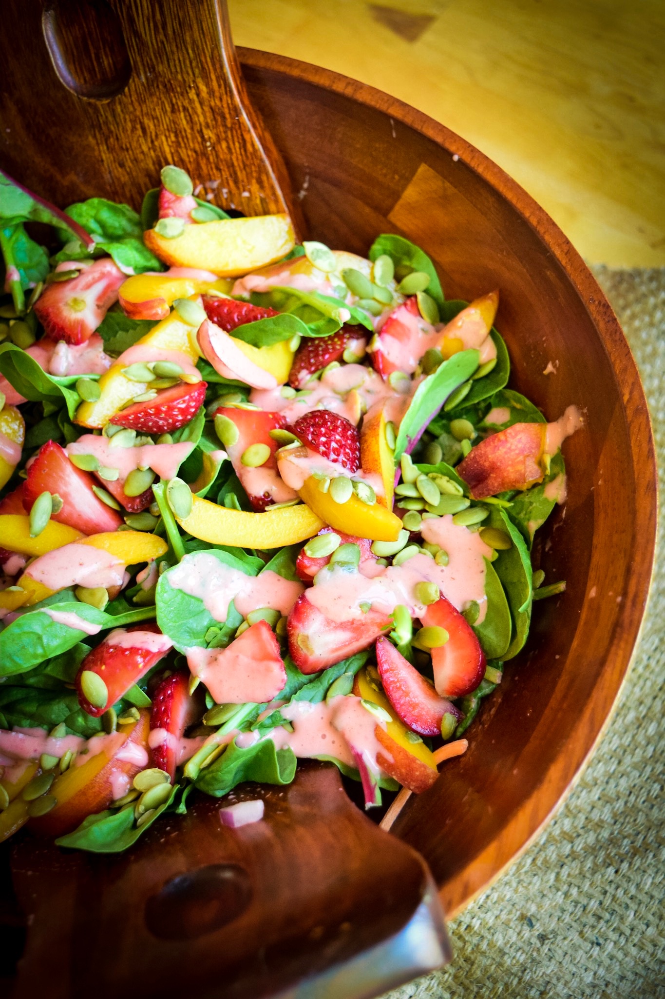 Don’t be scared-off by the chili vinaigrette. It isn’t spicy! It simply adds a smokey depth of flavor to balance the sweetness of the dish. If you want a spicy kick add a 1/4 tsp of cayenne powder to the dressing.
